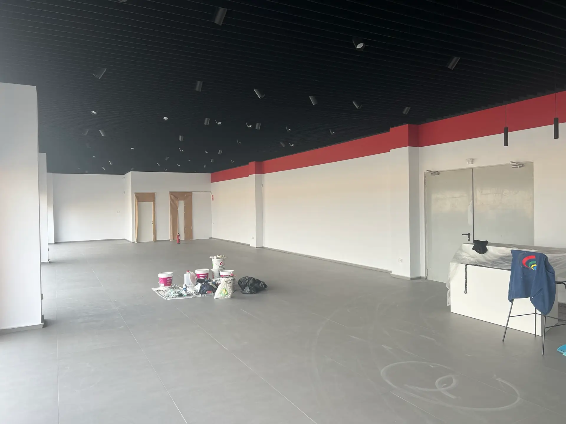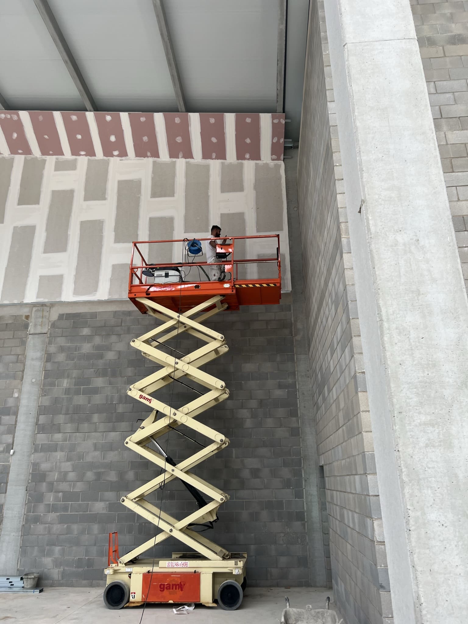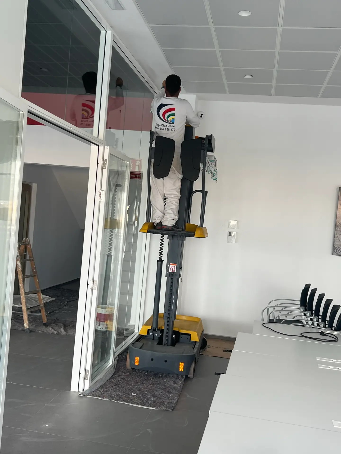 • Para todas las paredes del taller mecánico de la nave hemos aplicado (con Airless) dos capas de pintura plástica interior de color blanco.